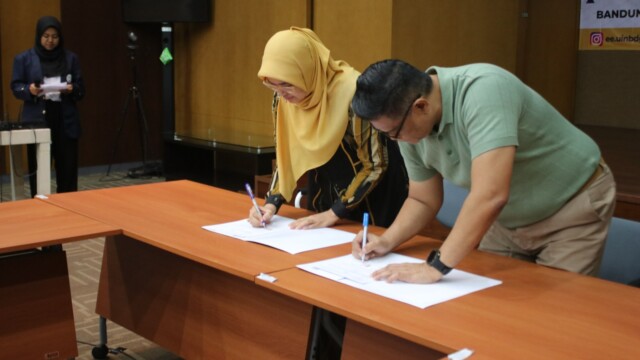 Dan STEI ITB terbuka bagi UIN Sunan Gunung Djati Bandung untuk melakukan kolaborasi riset bagi dosen dan mahasiswa, terangnya sambil menutup sambutan. Kegiatan dilanjutkan dengan penandatanganan kerjasama UIN dan ITB, dan ditutup dengan foto bersama.