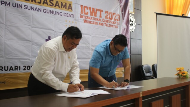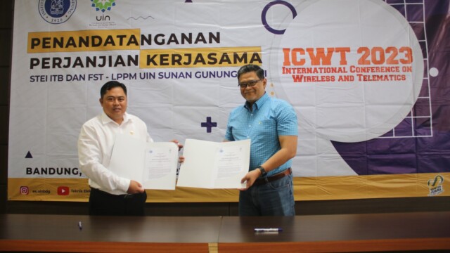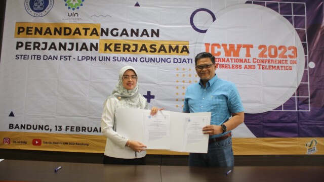 (Bandung 13/2) Penandatangan erjasama antara ITB dan UIN Sunan Gunung Djati Bandung dilaksanakan hari senin, 13 Februari 2023 di Aula Fakultas Sains dan Teknologi UIN Sunan Gunung Djati Bandung, yang dilakukan antara Dekan Sekolah Teknik Elektro dan Informatika (STEI) ITB dan Dekan Fakultas Sains dan Teknologi UIN Sunan Gunung Djati Bandung dalam penyelenggaraan konferensi Internasional ICWT 2023. Kerjasama ini merupakan tahun ke tujuh dalam penyelenggaraan konferensi internasional bersama.
