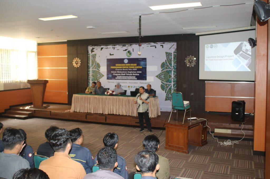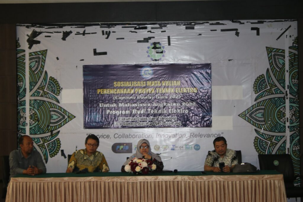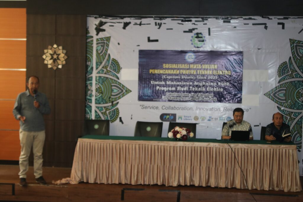 Bandung, 19 September 2025 — Jurusan Teknik Elektro Fakultas Sains dan Teknologi UIN Sunan Gunung Djati Bandung menggelar kegiatan Sosialisasi Capstone Design bagi mahasiswa angkatan 2022. Acara berlangsung di Aula Lecture Hall UIN Sunan Gunung Djati Bandung dengan dihadiri seluruh dosen Jurusan Teknik Elektro.