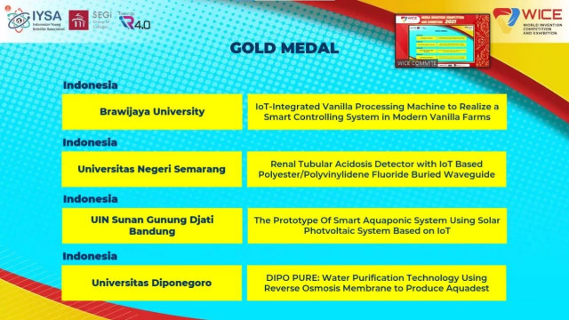UIN Sunan Gunung Djati Bandung meraih 2 Gelar dalam kegiatan World Invention, Competition and Exhibition (WICE) 2021 yakni medali emas untuk kategori Applied Physics and Engineering dan Malaysia Innovation, Invention and Creativity Association (MIICA) Special Award, kegiatan yang diikuti oleh berbagai negara diantaranya Malaysia, Thailand, Turki, Kazakhstan, Australia, Philipina, Macedonia, Pakistan, Korea, dan lainnya.